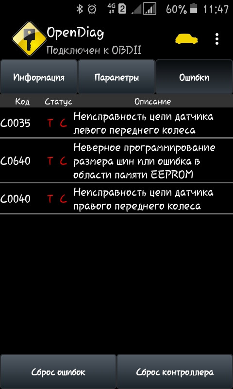 А у меня три ошибки! Два передних датчика и размерность калёс! Первые два решаемо заменой а как быть с колёсами пока х.з.