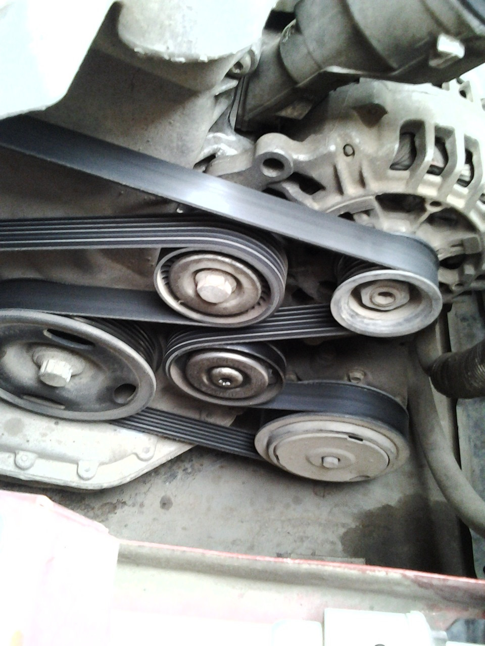 Осуществил свою давнюю задумку-изменил схему ремня генератора. Делал ещё в конце лета, на данный момент проехал с этой доработкой 8+ тыс.км., всё отлично работает.