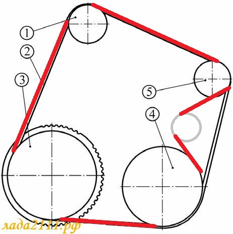 Вот стандартная схема ремня генератора на приоре