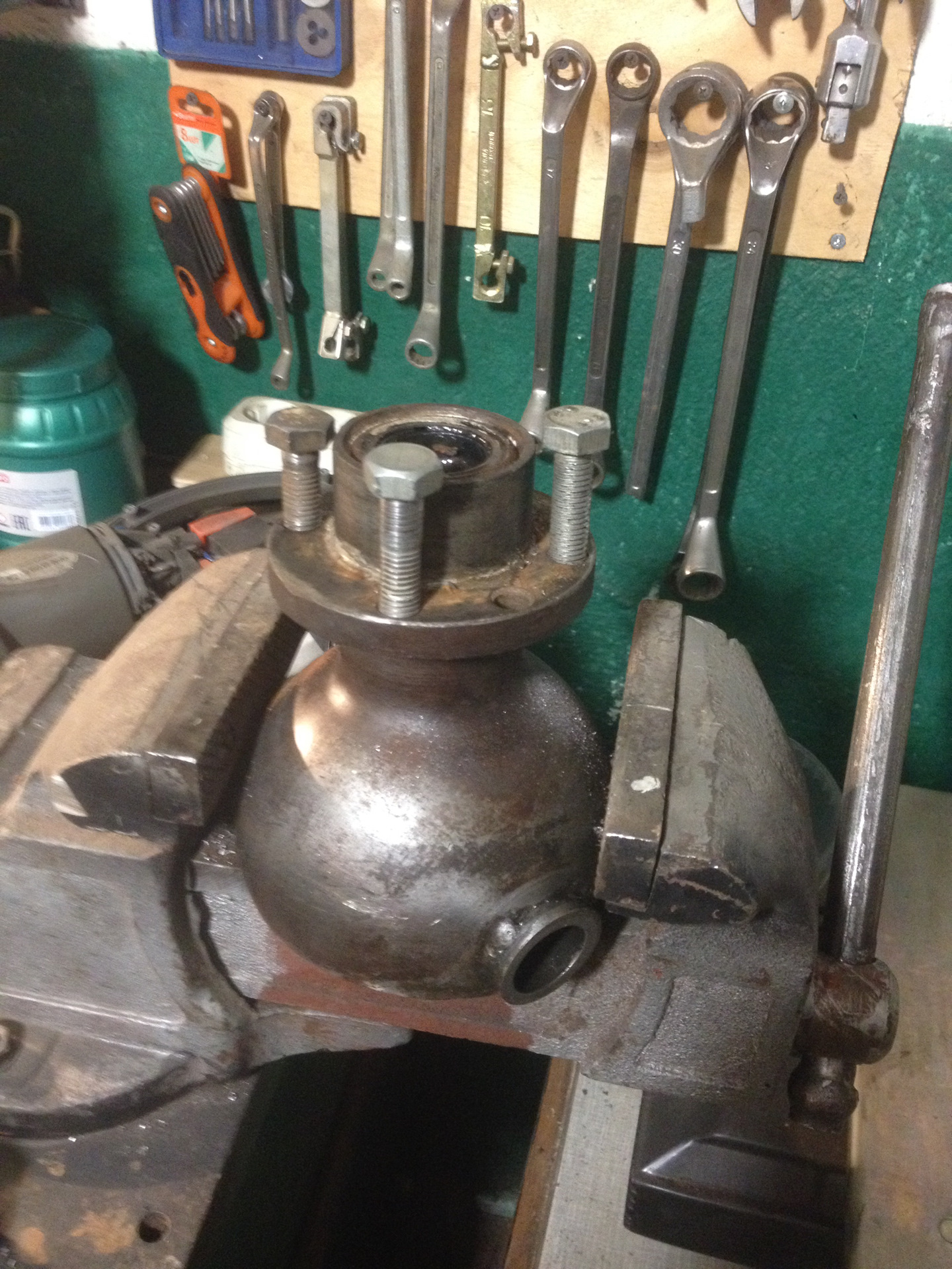 Решил заменить шкворня но получилось гораздо больше процесс подробно описывать не буду кому что не понятно спросят, а в кратце заменил ступичные подшипники наконечники на короткой тяге пыльники сальники масло в мосту шкворня один шар попал под замену поставил б/у и взял кондуктор и пересверлил шары чтобы изменить угол кастора на 8 градусов . Один шар открутился нормально второй срезал болгаркой после к остаткам болтов приваривал гайки и выкручивал … После изменения угла кастора ШОПК перестаёт быть взаимозаменяемой и каждая ставится на свою сторону и теперь покатавшись несколько дней прочувствовал разницу до и после весь ремонт в целом и изменённый угол дал гораздо лучшую управляемость в поворотах и просто уазик едет как по рельсам, а до этого приходилось подруливать