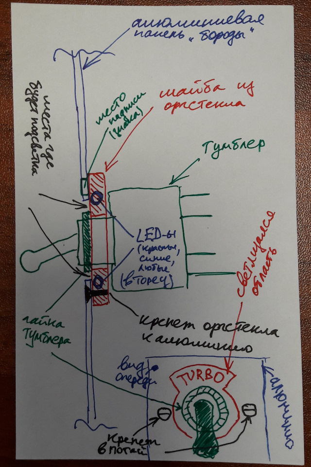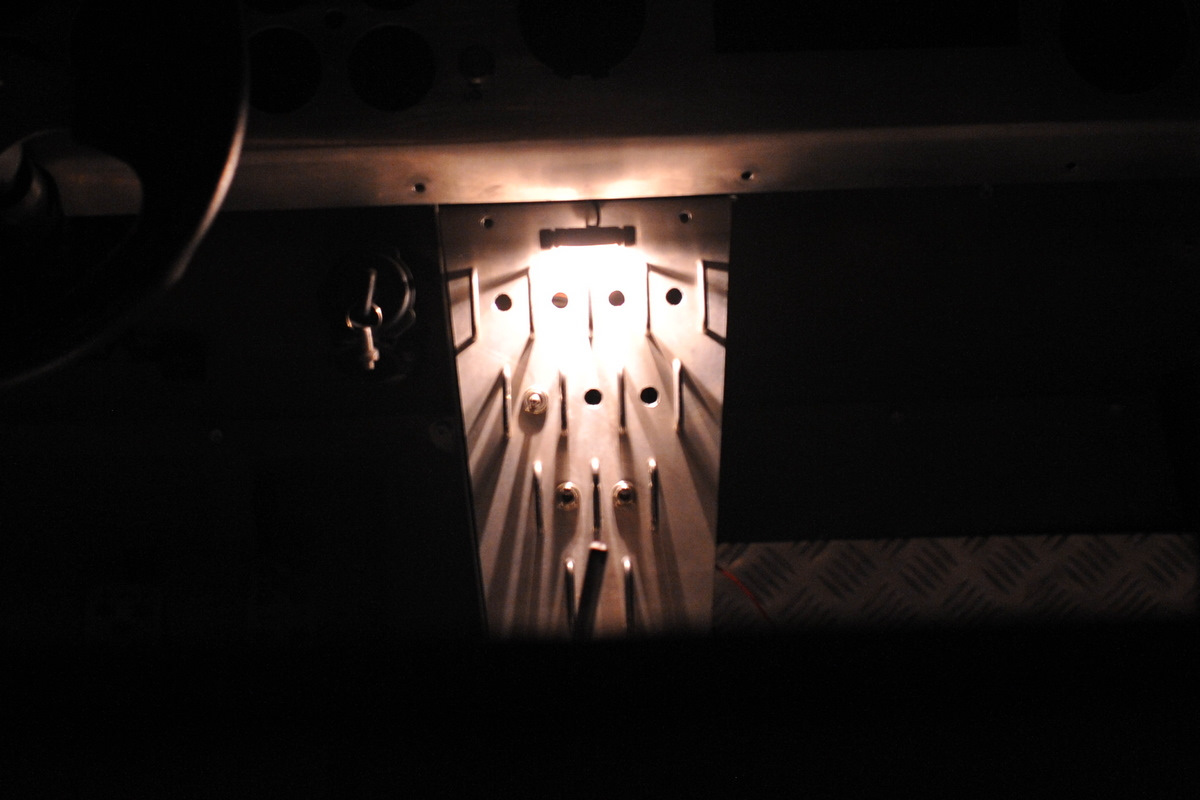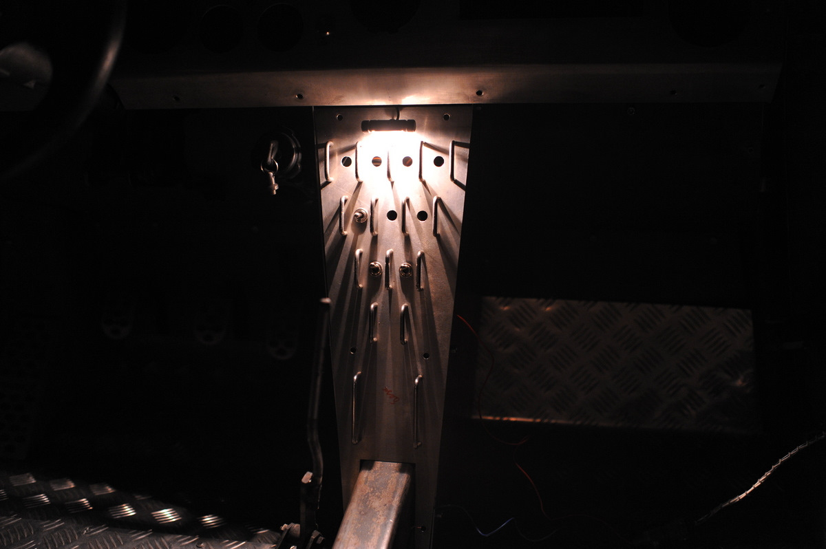 Про подсветку. Не будет ли он лишним этот светильник? При твоей страсти к лючкам? может в панели сделать потай? и оттуда светить будет. А если на лючок время найдется, то при открывании лампочка будет загораться? Но это так — мысли в слух. Еще можно Гайки тумблеров сделать пластиковыми, а с обратной стороны на каждую светодиодики. На али есть гайки, но обычные — под болты. Еще один вариант: под скобами сделать пропилы, в которые закрепить акриловые пластины. Снизу этих пластин поставить 1-2 светодиода. Свет будет не яркий, но его будет вполне достаточно, чтобы найти тумблер. Ну и последний — пиктограммы вырезать на лазерном станке. И в эти отверстия залить эпоксидку ювелирную. Она хорошо полируется, лампочки или светодиоды поставить не прямо под ними, а немного сбоку. И еще одна мысль по ходу писанины возникла — при включении тумблера, чтобы цвет подсветки менялся. Но, повторюсь, это только мысли.