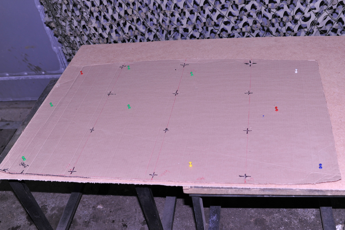 Кажется попал, тем не менее на картонке остаются некоторые записи, которые фото не передает. В общем переношу шаблон на ДВП 3,2мм:
