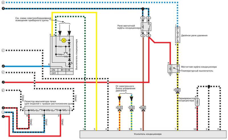 Передние противотуманные фары и обогреватель заднего стекла – схема