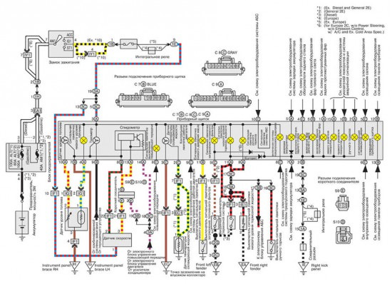 Поставил себе приборку с тахометром кинул провод IG- из подкапотного пространства (диагностический разъем) в салон подключил к приборке все заработало. Немного бесит колхозный провод идущий из разъема. Где-то под панелью точно должен быть этот провод кто знает подскажите к какой фишке он идёт на схемах не могу найти его. Тойота спринтер 100
