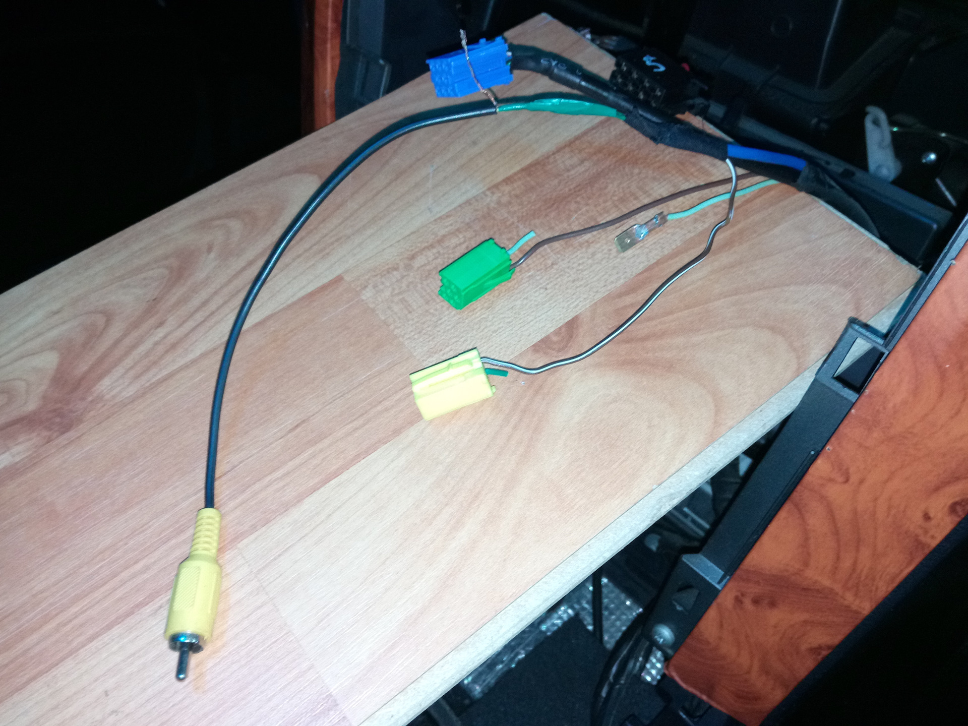 От желтой фишки 3, мы отрезаем зеленый провод, и припаиваем его к центру колокольчика! А коричнево белый с этой же желтой фишки 3, мы отрезаем и припаиваем к оплетке колокольчика мою оплетку можно видеть торчащей на фоне синий фишке. Собираем все воедино ставим магнитолу и проверяем! Видел при включении задней скорости включается и камера дает нам обзор! О боже что мы видим камера стала показывать в 50 раз лучше чем на родной магнитоле! Все пакуем и собираем пластик салона!