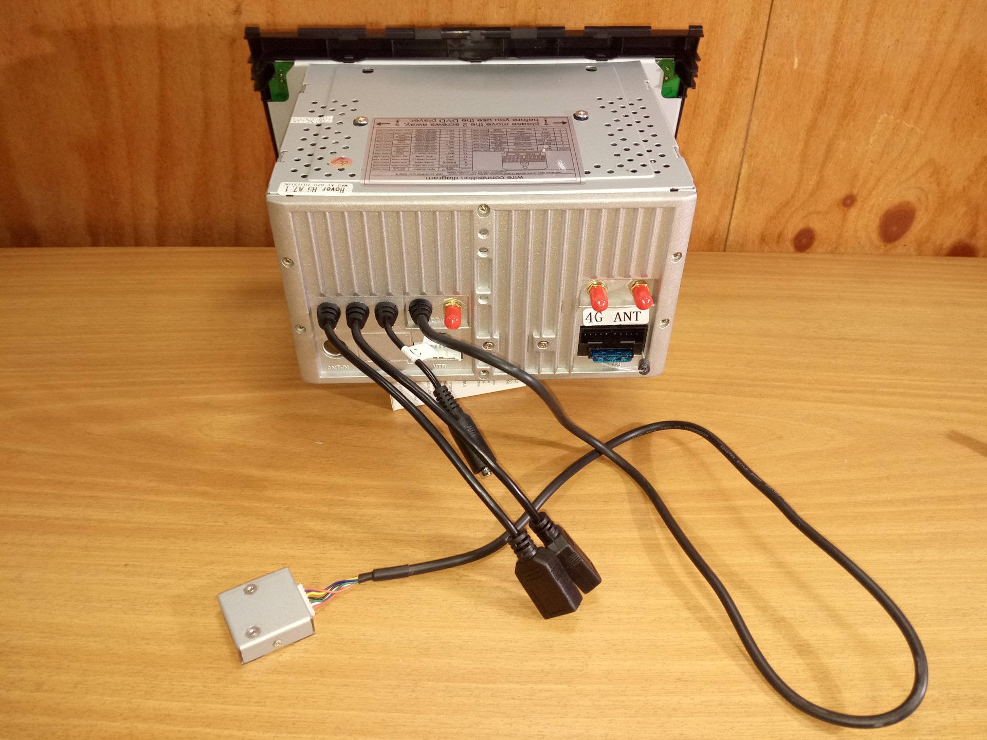 Сзади мы видим слева на право: два выхода USB под ними отверстие гнезда антенны, далее выход для внешнего микрофона и он там не зря, в разговоре по лёлё вас слышно как с подвала, далее 4G модем, рядом с красным колпачком гнездо внешней антенны GPS, под ними разъем для жгута колокольчиков. Далее два колпачка красных как вы догадались для двух антенн 4G, под ним разъем для жгута питания и предохранитель.
