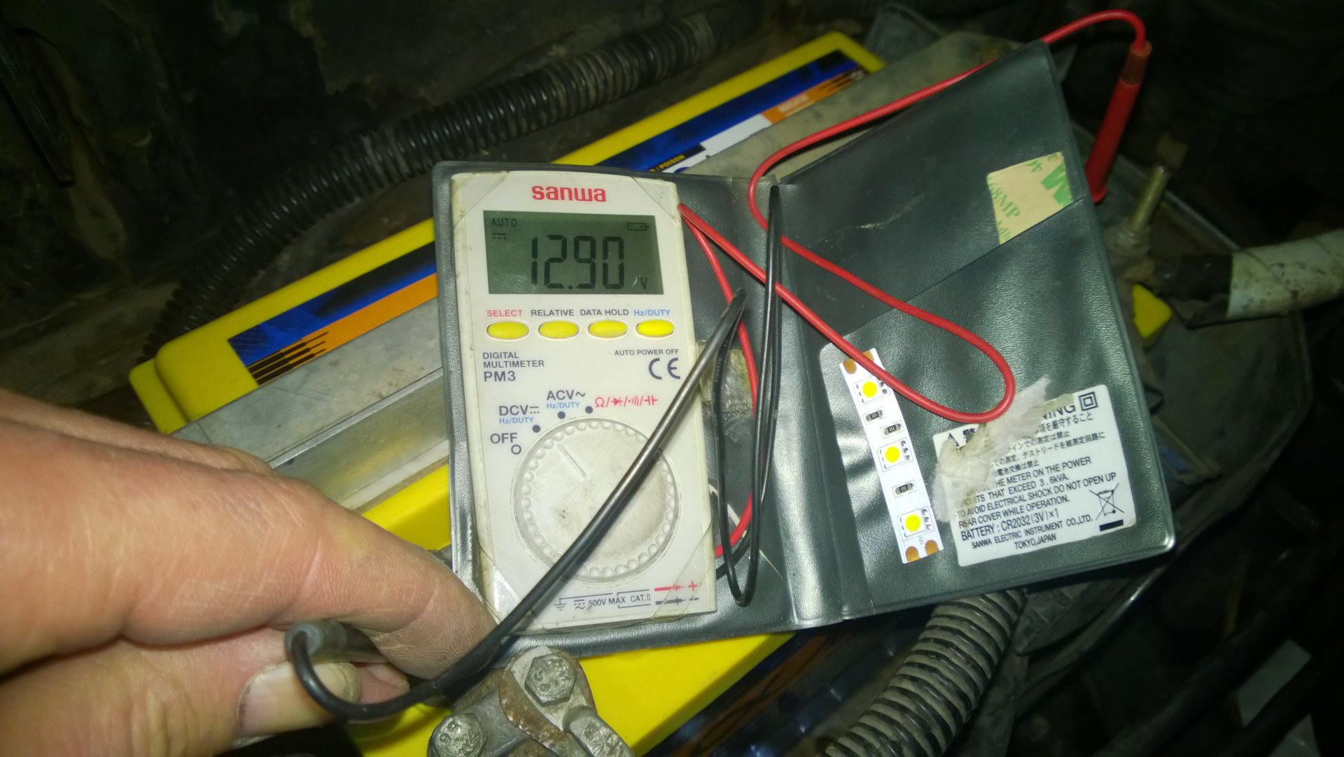 После того, как 15 минут погрел двигатель, заглушил и замерил напряжение