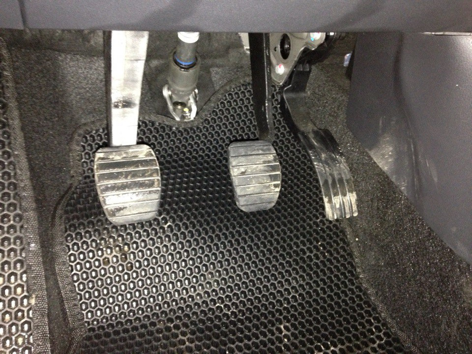 также в начале легли, что сцепление при полном выжиме задевало и при поворотах руля чиркало о край коврика, НО я приклеил липучку на самом верху коврика и плотно прижал к ковролину под педалями — теперь все норм)