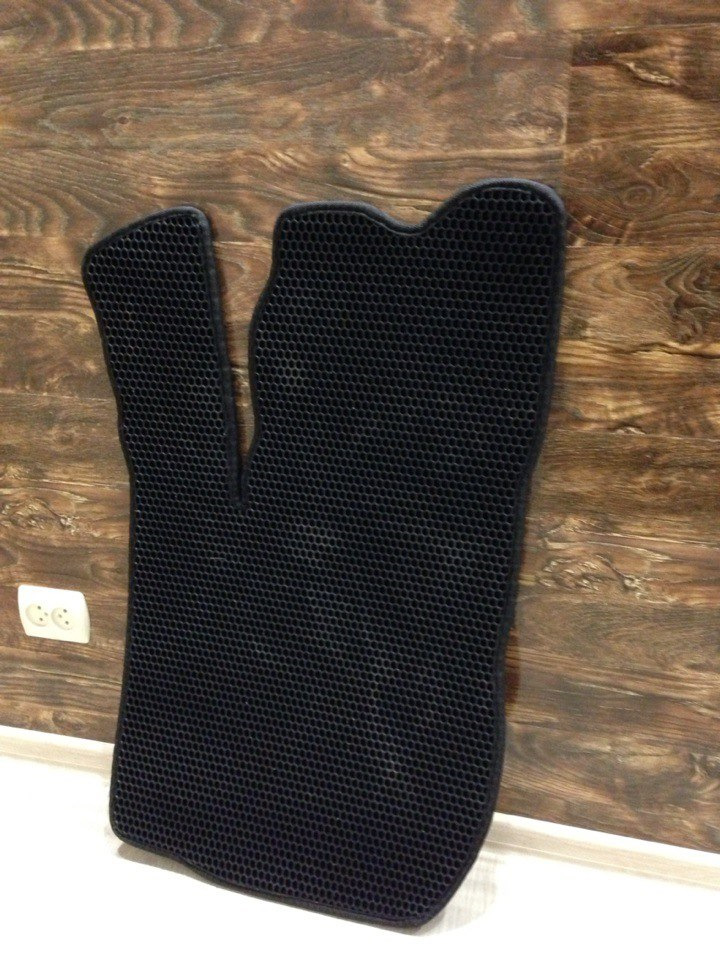 Коврики черные с черным кантом с новыми сотами (шестиграннники вместо ромбов). Коврики толстые (примерно 1 см толщина) и легкие. Все коврики легли хорошо и закрывают максимум пространства. Особенно водительский коврик уходит вверх и закрывает все пространство под педалями и за педалями (ни у кого из конкурентов не закрывают так эту область под педалями). Также задние коврики сделаны под все пространство, у других производителей задние коврики идут без загибов вглубь.