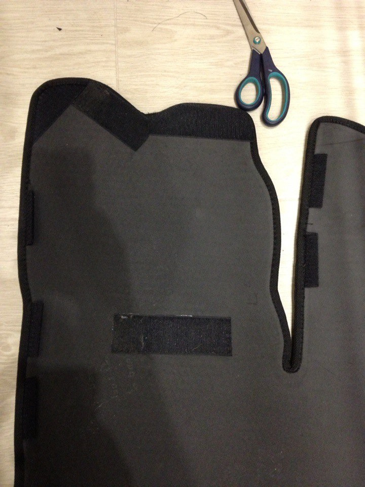 Коврик принес домой, разложил его, сверху положил тяжелые вещи. На следующий день коврик расправился и заломы были минимальные. Унес в багажник и заодно пришил к правому краю коврика мягкие ленты от липучек, чтобы за них зацепить набор автомобилиста Виталфарм K6103601-P1-T121 (www.drive2.ru/l/484223822434664592/), а то он ездил по коврику и его липучками на задней стенке не к чему было прицепиться)