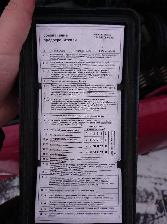 Сегодня вообще все прекрасно! Утром завелись, греемся, включаю обогрев заднего стекла и на максимум обдув лобового. Все работает. Только поехала, перестает дуть обдувайка, запахло паленой пластмассой… Выключила на 0, думаю, приеду на работу (благо недалеко) и поменяю предохранитель.