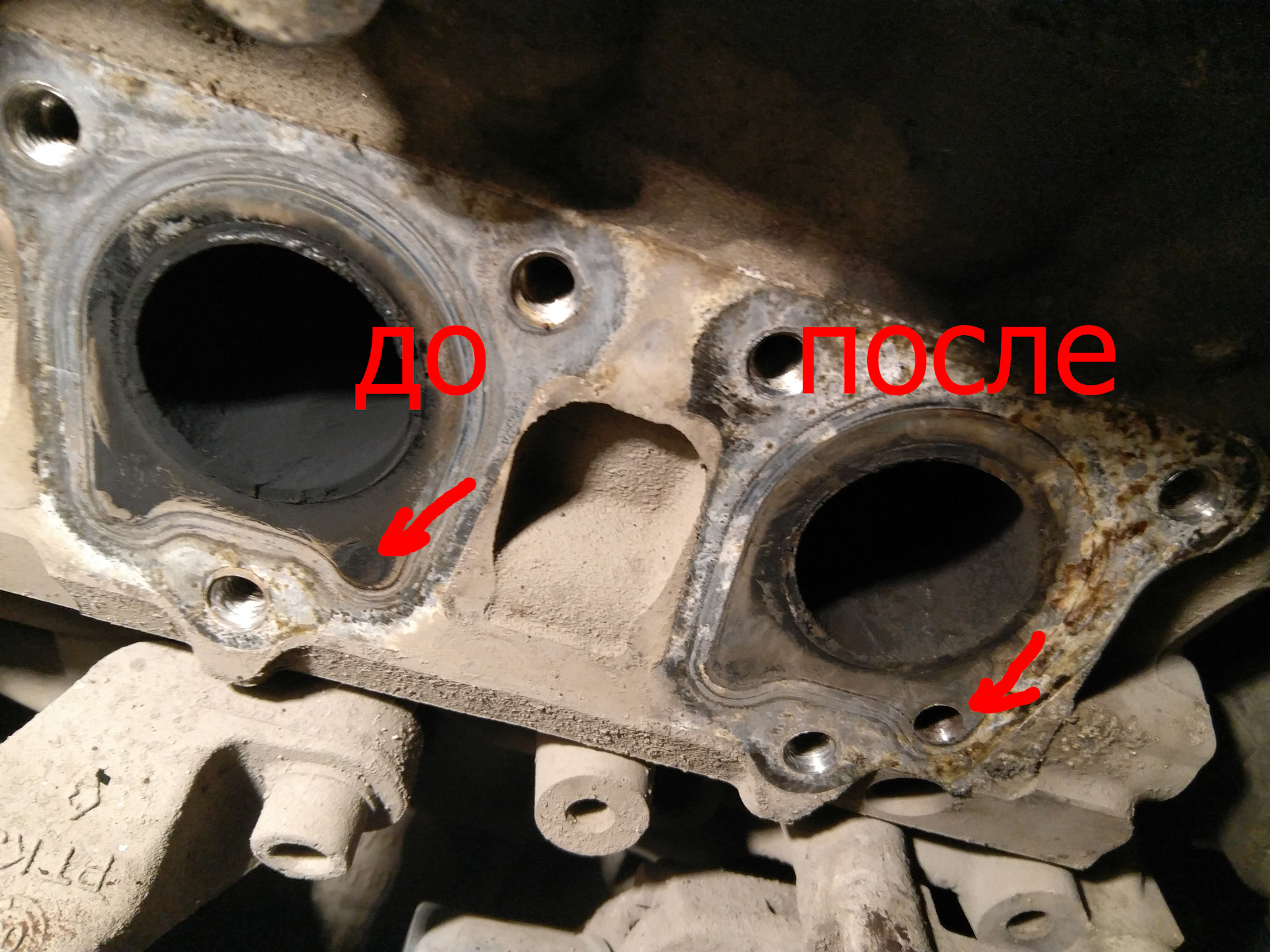 Тонкие каналы имеют технологические отверстия, под прокладкой выпускного коллектора. Они нам и нужны, для чистки использовал сверло 6мм. но ковырял в ручную чтобы ничего не повредить, глубина канала примерно 7см, можно нащупать пальцем, через выпускной канал, в конце может выпасть кусок прессованной сажи, чтобы не допустить попадания грязи в двигатель — использовал пылесос.