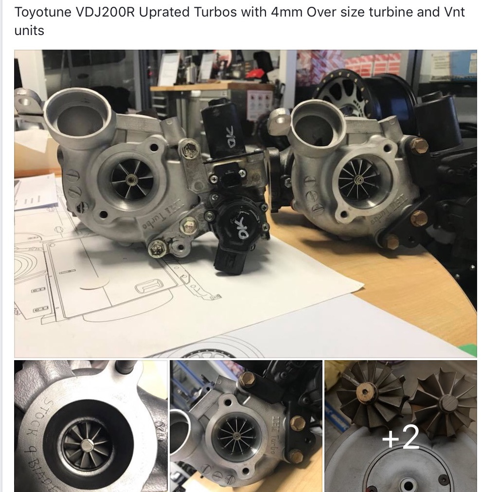 Наикрутейшая австралийская компания Toyotune, о которой я уже упоминал, специализирующуюся на крузаках, предлагает модернизированные турбины на крузак. Заодно инжектора модернизированные, позволяющие выдать ещё бОльшую мощность, тоже имеются в наличии. Учитывая, что это Австралия. можно быть уверенным на 146%, что качество будет безупречным (в отличие от наших «псевдо-тюнеров), а тюнинг в абсолютно безопасных рамках. Кстати, если к этим турбинкам добавить ещё хороший интеркулер, взамен штатного, немного улучшить впуск и выпуск по моему рецепту, то, думаю не ошибусь, предположив, что мощность будет примерно как у Гелика пятисотого и уж точно больше чем у Лексуса 570, который будет просто пыль глотать вдалеке. При том, что расход будет в 2 раза ниже, чем у вышеперечисленных.