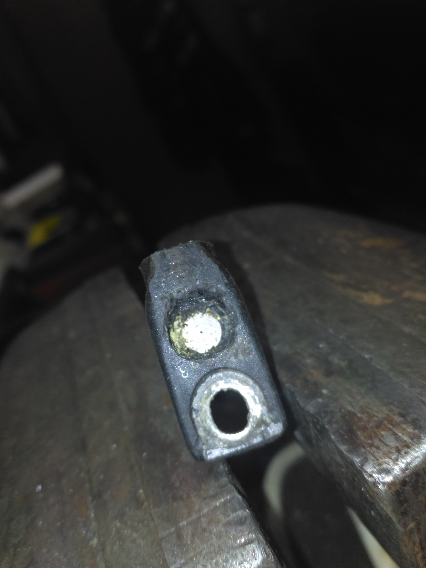 На передних датчиках провода были продеты в направляющие/защитные трубки. За прошедшие десятки лет провода к ним прикипели напрочь, а одна из трубок вообще была безжалостно сплюснута в одном месте.