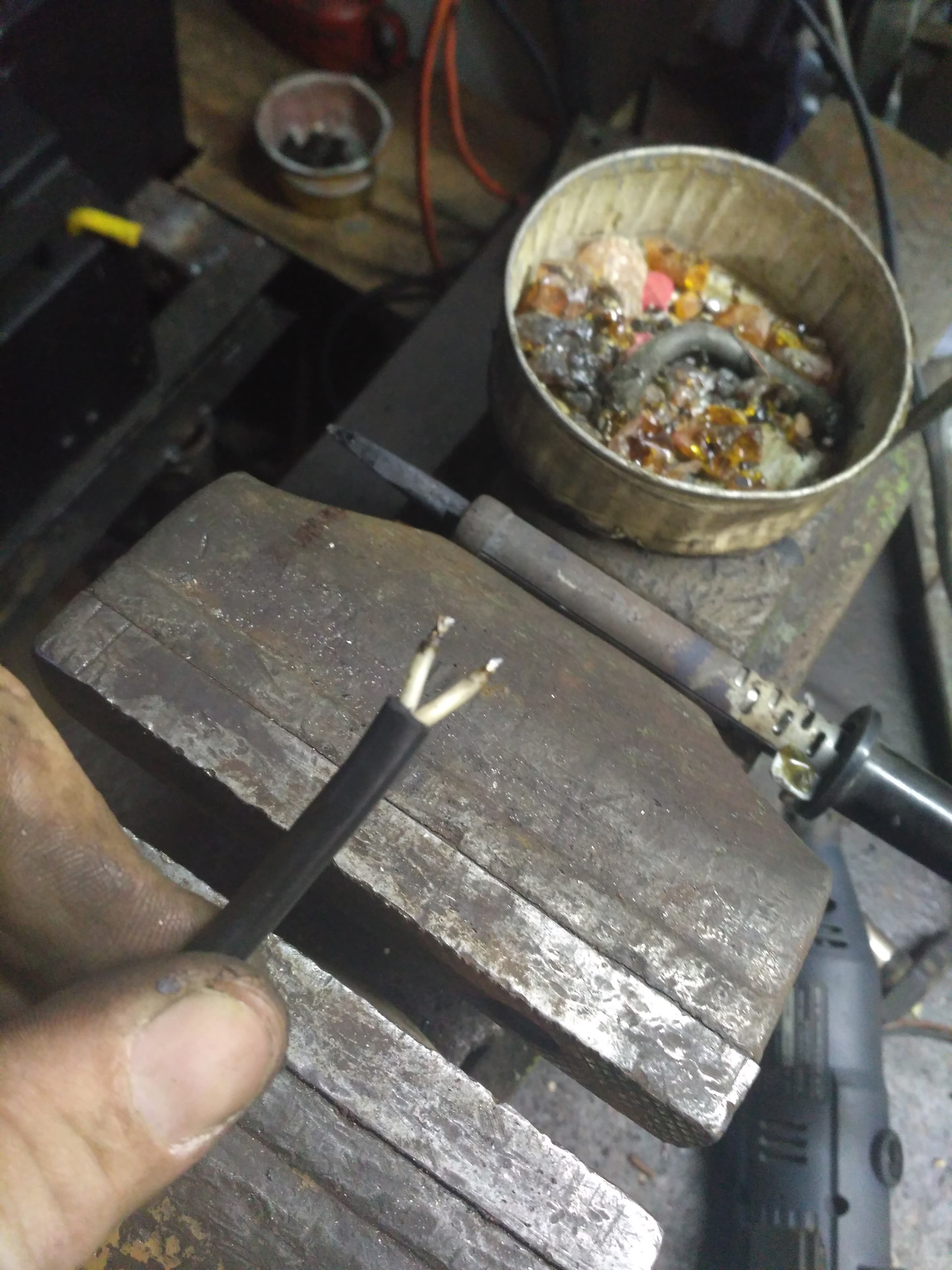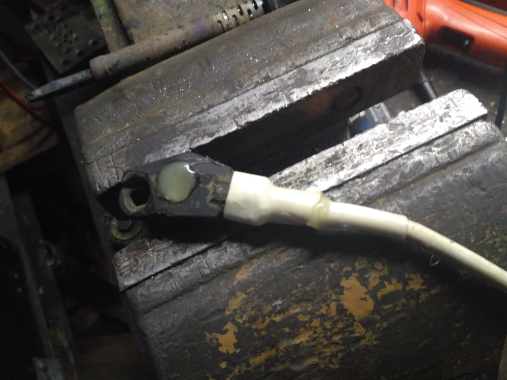 Сначала стоит измерить длину зачищаемых хвостиков по месту, а уже потом лудить их. Длинных делать не нужно — места там немного. Кстати — провод можно использовать любой, но поливинилхлорид не очень любит низких температур, так что стоит поискать что по-лучше. Не знаю, откуда взялся провод который я сейчас припаял, но он точная копия оригинального провода — на морозе он гораздо более гибкий, чем обычный.
