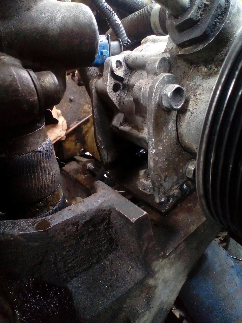 Визуально кажется что шкив насоса гур теперь расположен чуть под углом к остальным. Возможно гайки криво приварил или кронштейн покорежило. Время покажет насколько критично.