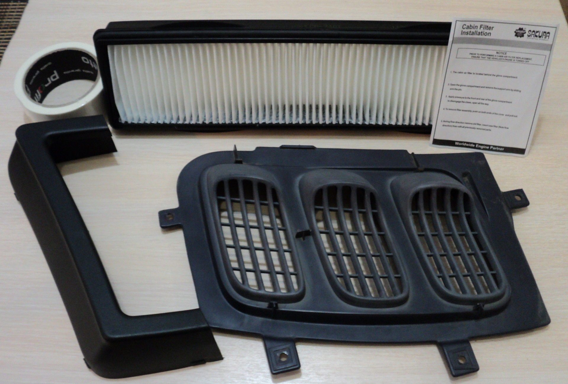 Еще одна загадка — салонный фильтр RENAULT Twingo. Это какая-то тайна за семью печатями. Сколько не "гуглил", ответа не нашел. Большинство производителей предлагают близкие по размерам варианты: MEAT & DORIA (Италия) — 266х118 мм, DENSO (Нидерланды) и MECAFILTER (Франция) — 265х119 мм, KOLBENSCHMIDT (Германия) — 263х120 мм. Но "окна" такого размера в моей машине нет! Ставить сетку в решетку воздухозаборника нужно (спасаться от листьев, как источника "болота" под капотом). Но ведь и пыль нужно как-то нейтрализовать. Нашел салонный фильтр близкого размера, теперь ищу место для его фиксации.