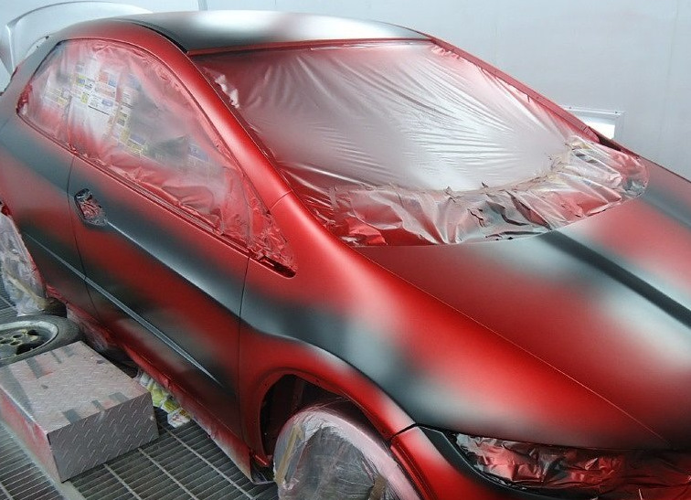 Вышеприведенная фотография из просторов И-нета вдохновляет на смелые эксперименты. Идея красить обновленные участки в более темный (возможно, черный) с плавным переходом в основной цвет интересна по ожидаемому результату, но пугает отсутствием практики такой покраски. Вытянуть мелкие вмятины на правом крыле и в левом переднем углу капота (фото ниже) методом термоконтраста (нагрев вкруговую горелкой и быстрое охлаждение струей сжатого воздуха) не удалось полностью. Дотягивал рихтовкой и шпатлевкой.