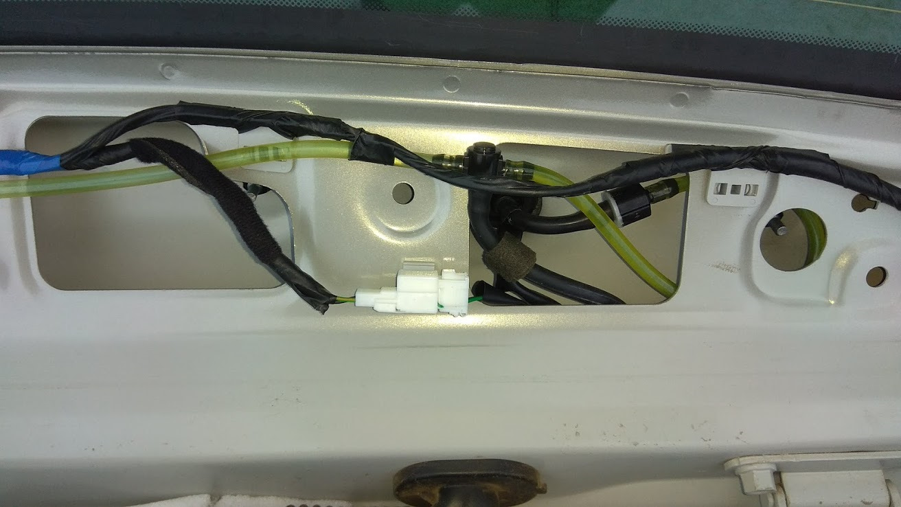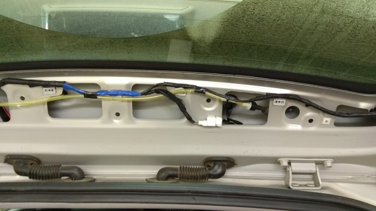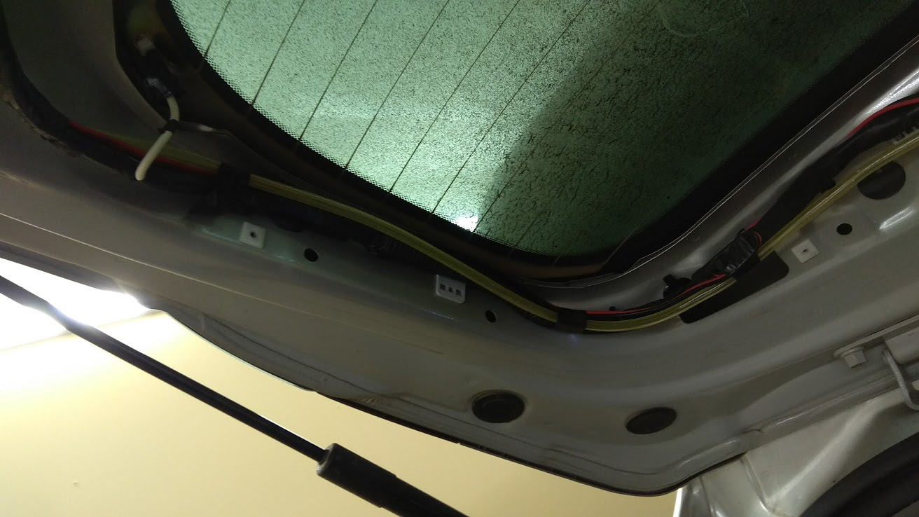 10) Прокинуть шланг к форсунке омывателя заднего окна.