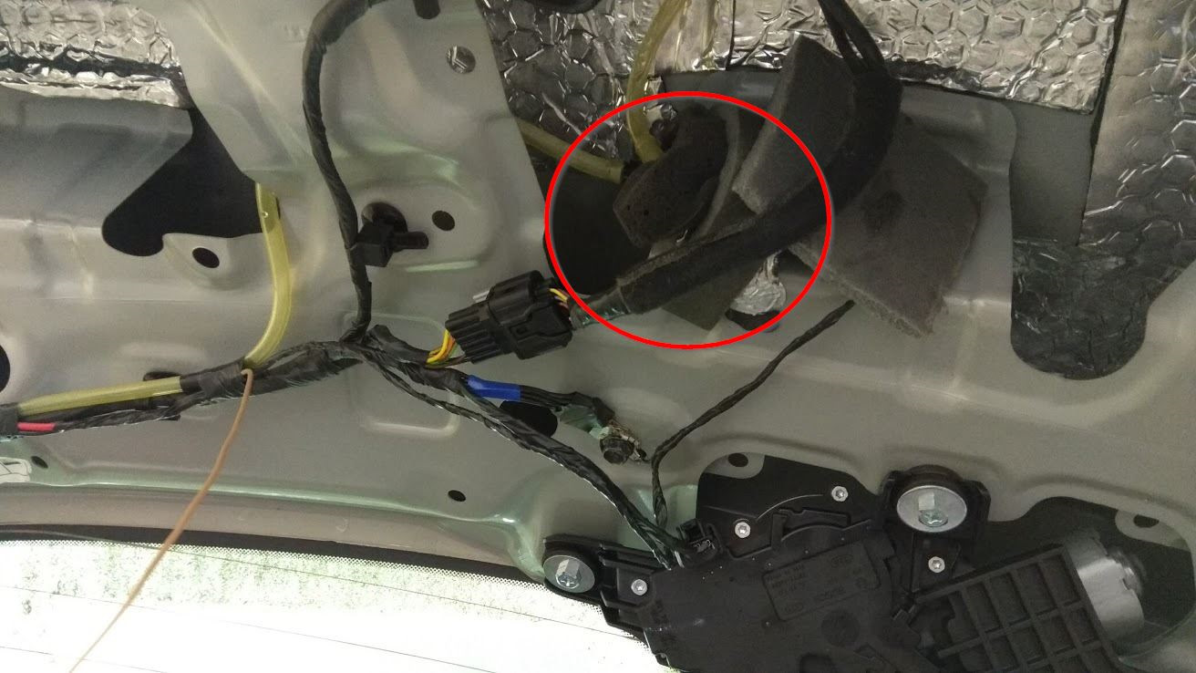 1) Снимаем обшивку задней двери (инструкция по снятию тут)