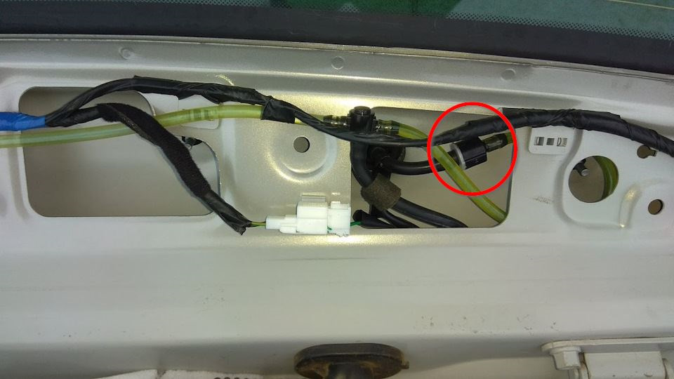 На фото видно только обратный клапан на омывайку заднего дворника.