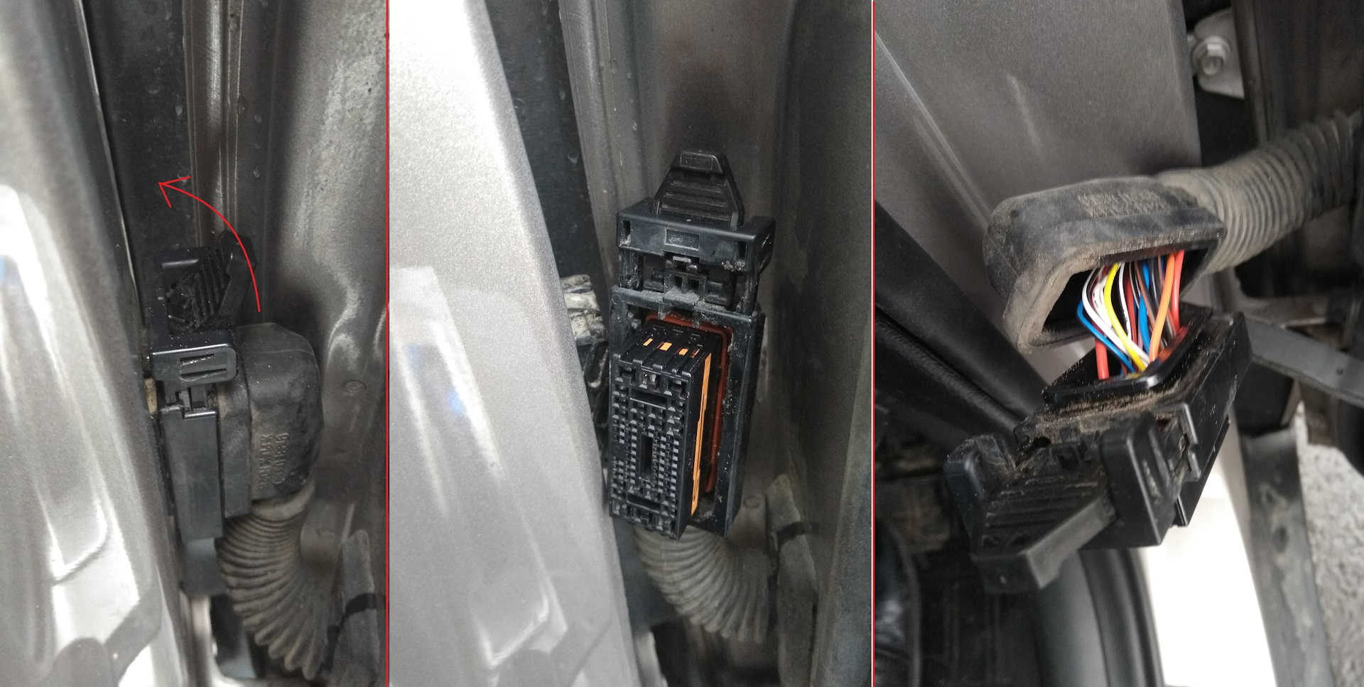 Подключение в водительской двери — для автомобиля с обычным доступом.