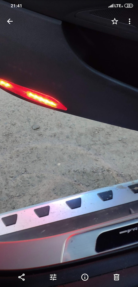 Я так понимаю, подсветка включается при открытой двери, вне зависимости от включения габаритов ? в чем смысл в светлое время суток подсвечивать ? Подсветка с логотипом не сгорела ? Смотрю между диодами появилось расстояние, сгорели или отклеились и сместились ?