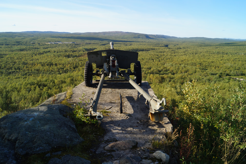Дальше заехал в Верхнее Луостари, там на сопке установлен памятник ЗИС-3, легендарной 76,2-мм советской дивизионной и противотанковой пушке, одному из лучших орудий Второй мировой войны, стоящей на вооружении ряда стран до настоящего времени. Да и вид с такого памятника отменный!