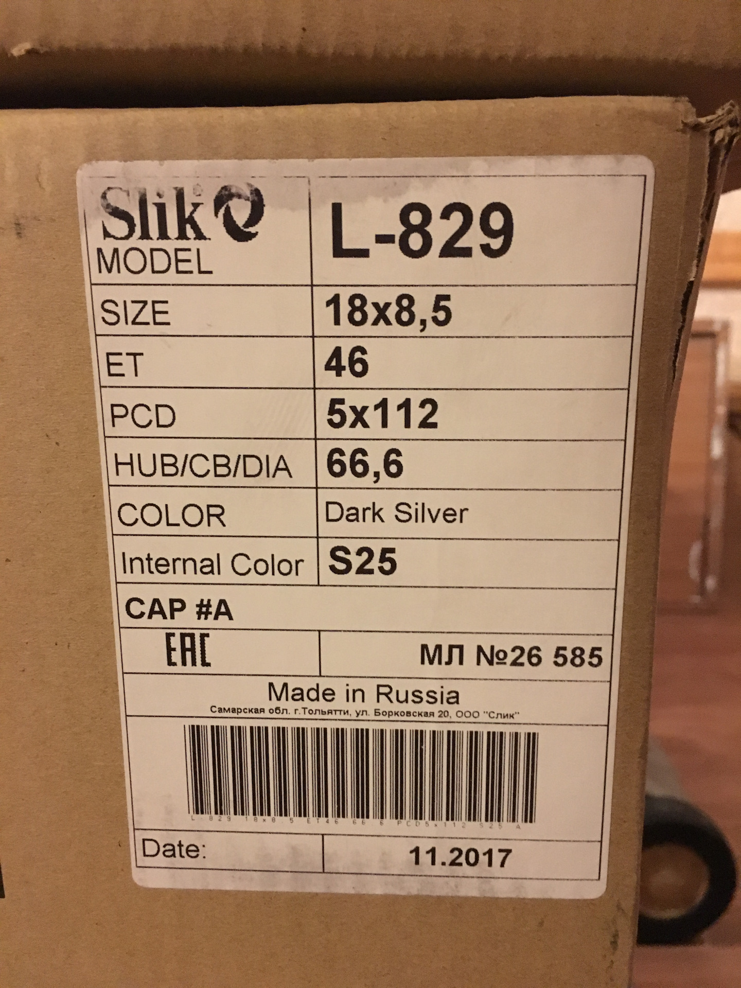 Параметры диска Slik L-829 18*8,5 et46, 5*112 DIA 66,6, цвет s25 комплект купил на лето, но как время будет собиру с резиной и примерю на машину, надеюсь это будет скоро Т.к. Уже не терпится))))