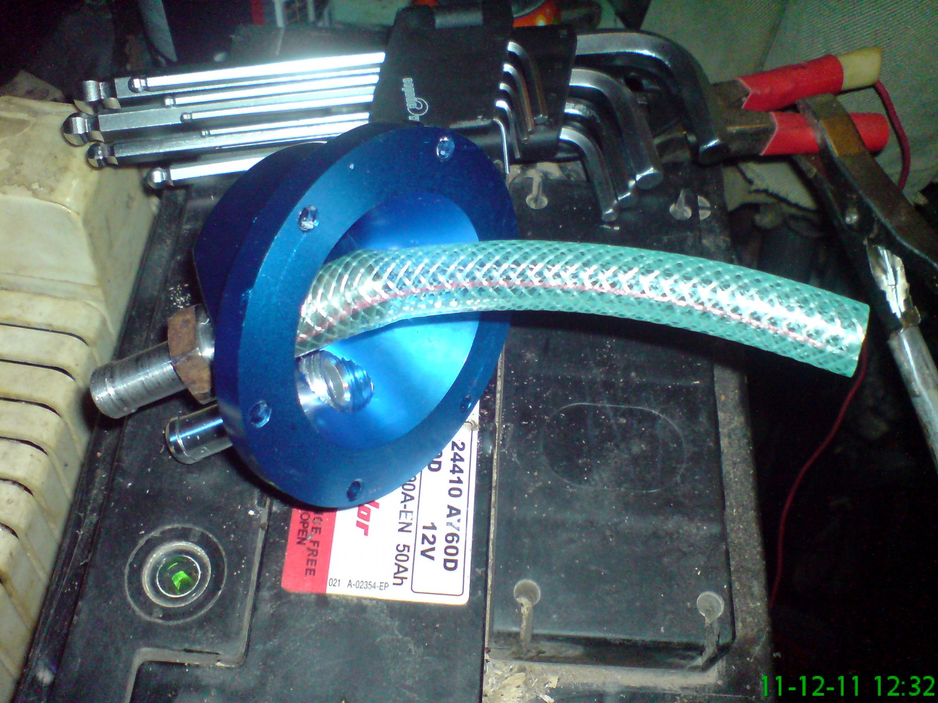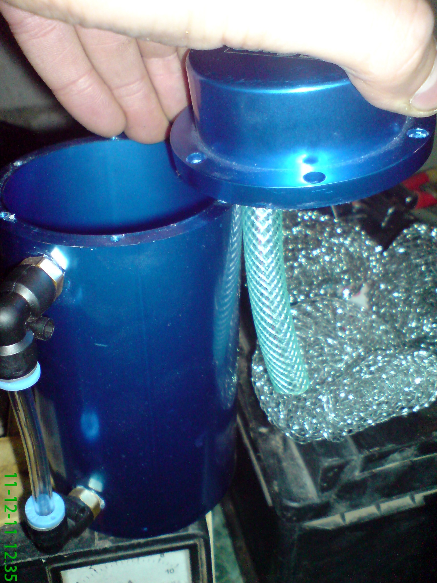 Наконц-то дошли руки до маслопомойки, был заказ переходничок другого вида, с сосками с двух сторон. На внутреннюю часть крышки (на переходник был одет шланг примерно на 2/3 высоты бачка), бачок полностью набит металлической сеткой-мочалкой. Т.к. Кетай делает фуфло все приходится дорабатывать, но зато внешний вид помойки меня вполне устраивает, а внутренности теперь приведены в порядок.