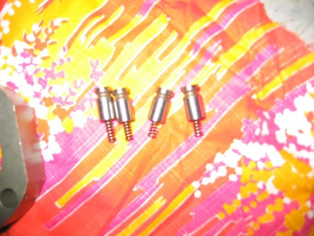 16) вставляем поршни с пружинками в блокировку, нажав пальцем вставляем пруточки для фиксации поршней внижнем состояние