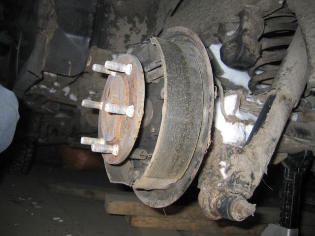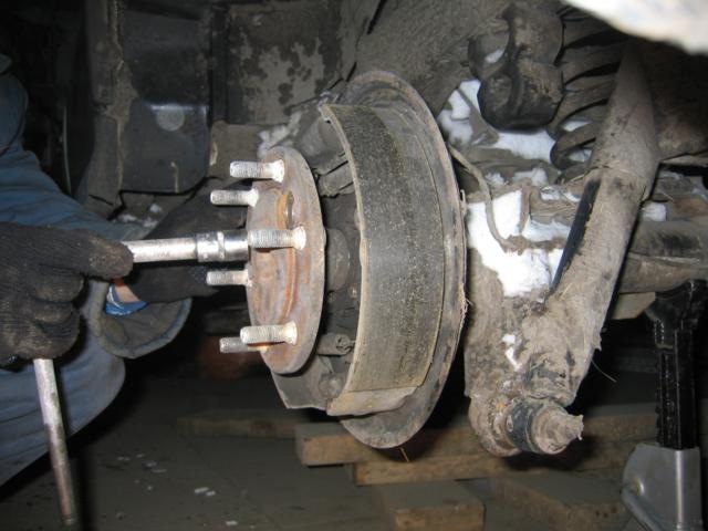 5) а) если дисковые тормоза, откручиваем два болта рамки суппорта, поднимаем суппорт кладем его на мост около пружины, снимаем тормозной диск