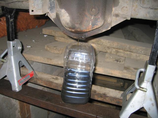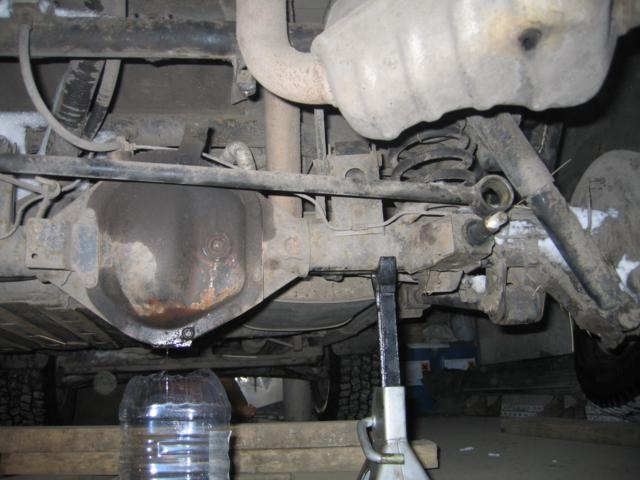 2) откручиваем нижнюю пробку на мосту, сливаем масло с моста