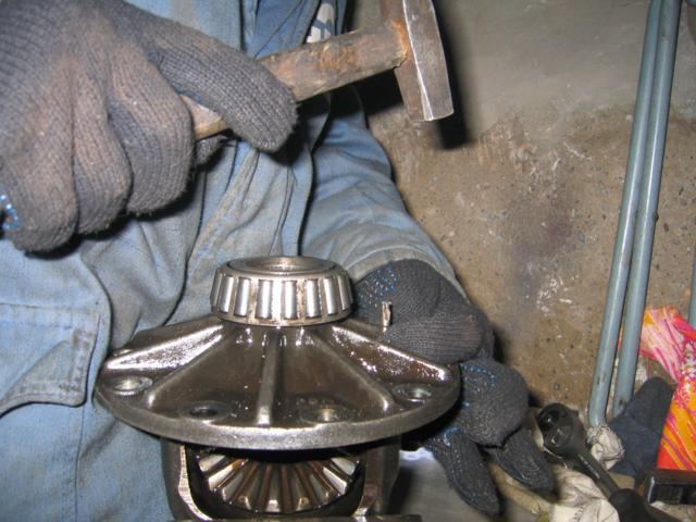 15) аккуратно забиваем втулочки, смотри чтобы отверстие под штивт совпало с отверстием в корпусе дифа, лучше через оправку это делать