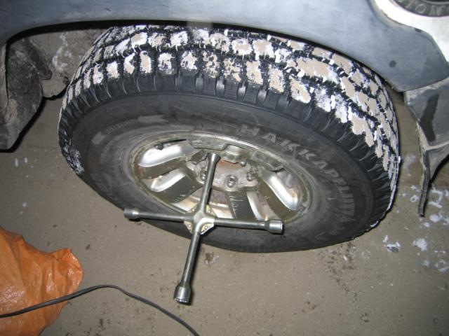 3) домкратим машины, вывешиваем оба колеса, ставим подпорки (кирпичи)