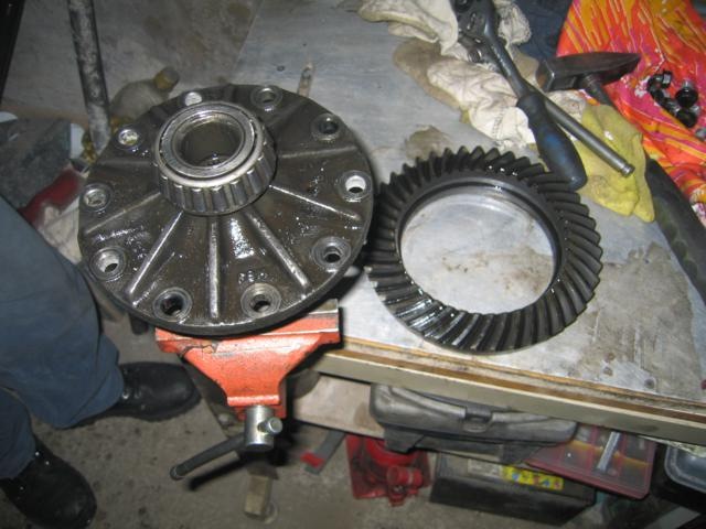 12) зажимаем диф в тисках (аккуратно, не портя подшипник), откручиваем главную пару, 10 болтов на дифе( откручиваются тяжко, помогаем длиным рычагом, трубой) снимаем главную пару.