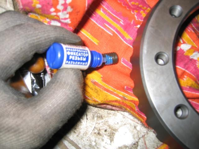 20) наносим резьбовой герметик на болты ведомой шестерни главной пары, прикручиваем шестерню к корпусу диференциала.