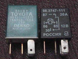 Респект за идею с Релюхами, а то я себе вывел и теперь висят примотанные к косе проводов — стремно как-то, будем менять… Да кстати, возможно пригодится, такое маленькое реле есть у нас на Калинах, вот оно www.vistaclub.ru/forum/download/file.php?id=7700 нашел в форуме Toyota Vista-водов, а вот ссылка на стоимость и производителя www.avtozapchasty.ru/shop/i.php?id=288023