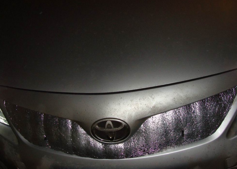 В связи с резким похолоданием прогревать автомобиль приходится дольше и стало выдувать все тепло двигателя беспощадно . Пришла идея для начала закрыть радиаторную решетку. Пробежался по авторынку и по магазинам думал может подберу утеплитель для отечественного автопрома, приглядел для ГАЗ 3110, крутил — вертел, но не знал как эту штуковину крепить на морду Короллы. В итоге решил делать сам. Вот что из этого вышло…