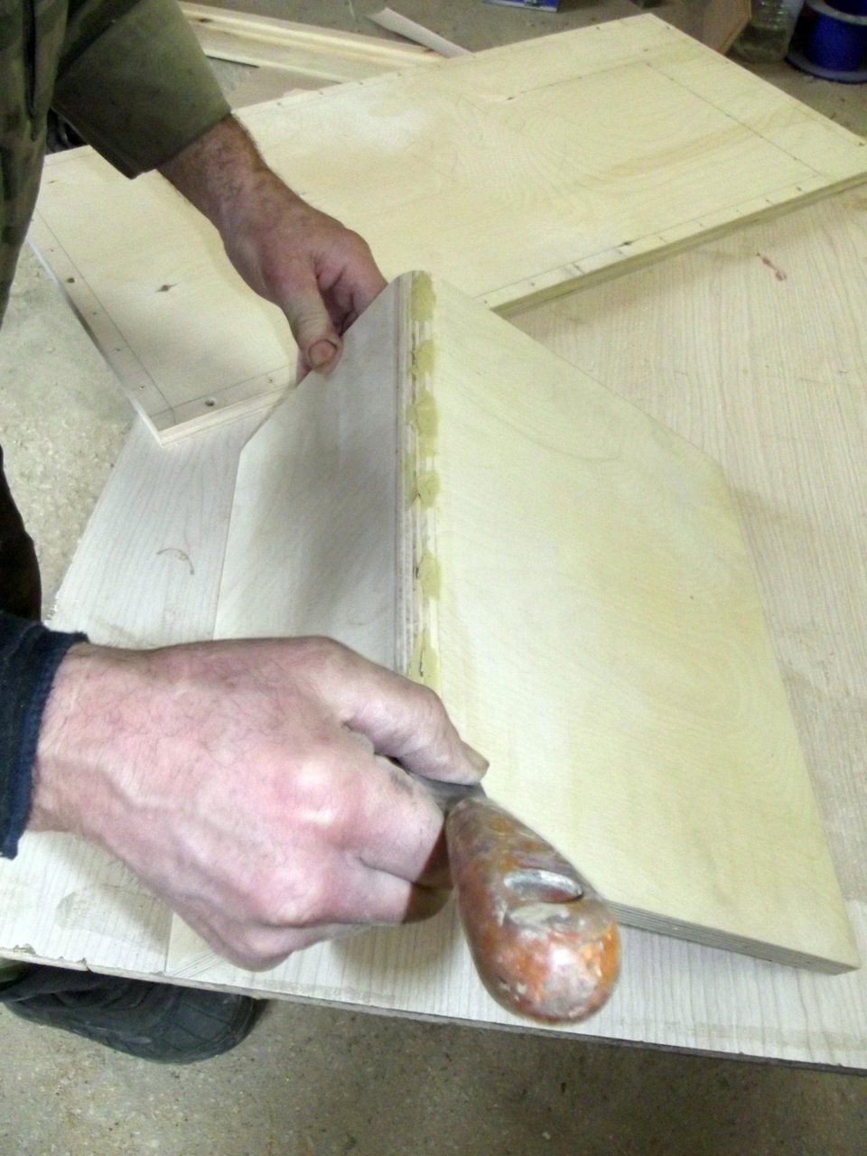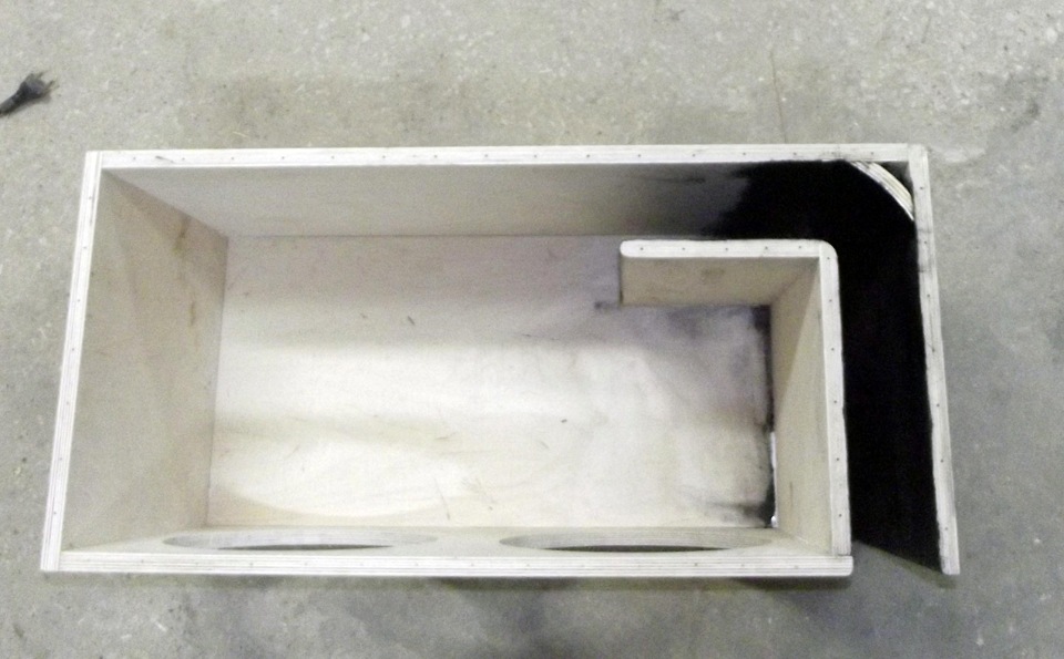Сделал "правильный" равноширокий порт, загнул фанеру в вакумате под нужный нам радиус.и приклеил на силиконовый герметик с саморезами. тут немного косячно — соглашусь))
