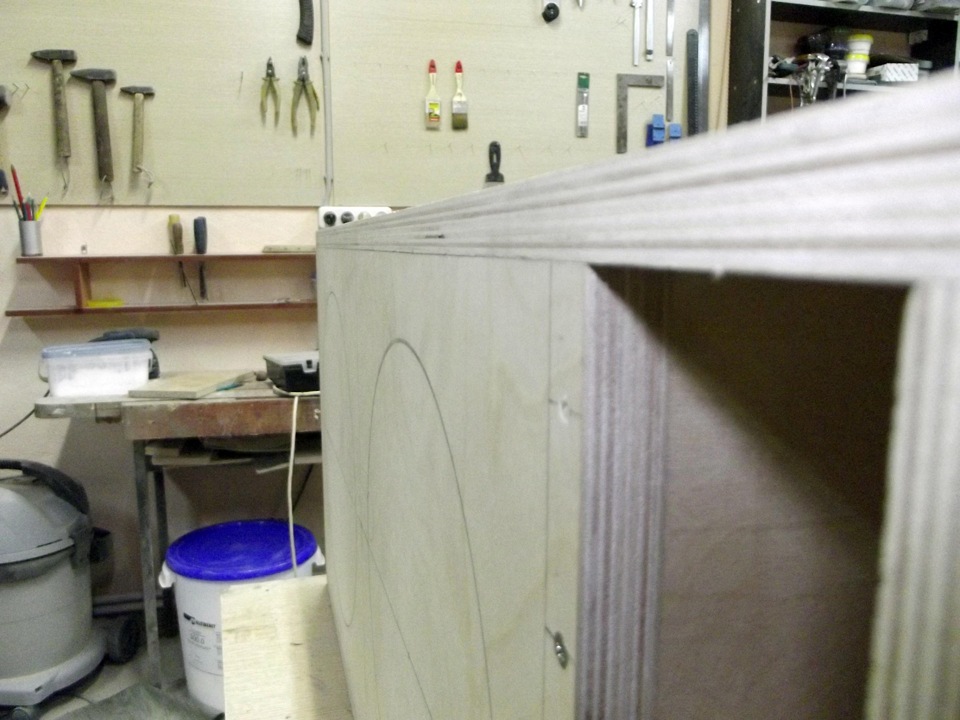 ПС. на фото видно вакумат с матрицей, в нем гнется в данным мамент фанера для скругления стенки )