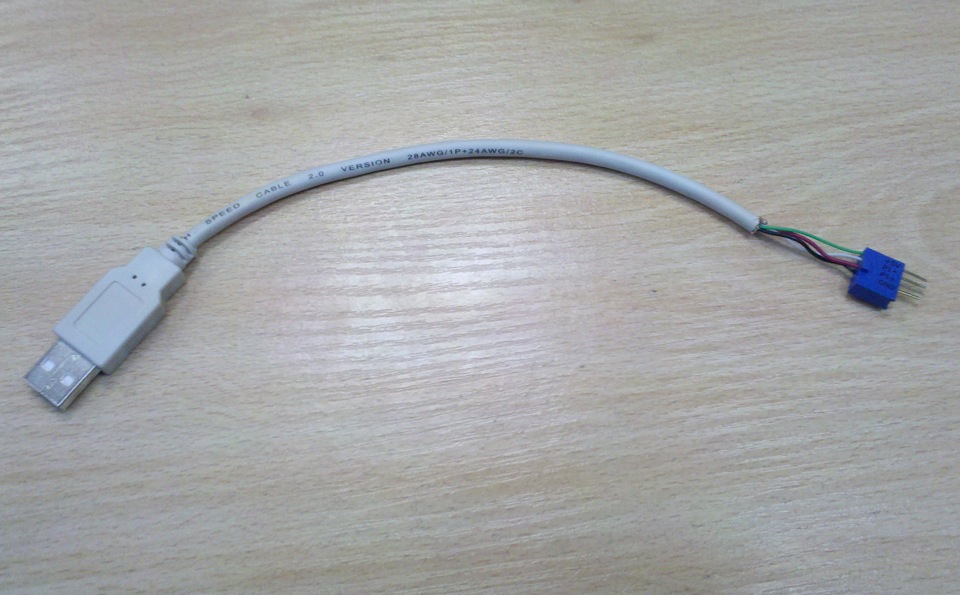 Прочитал на форуме ceedclub, как можно сделать переходник, чтобы штатный USB выход работал и решил тоже сделать себе такой. Для переходника потребовался штырек, который вставляется в материнку для USB. И соответственно сам провод USB. Разрезал провод USB и припаял по схеме, которую так же взял на форуме. Вообщем получилось вот так: