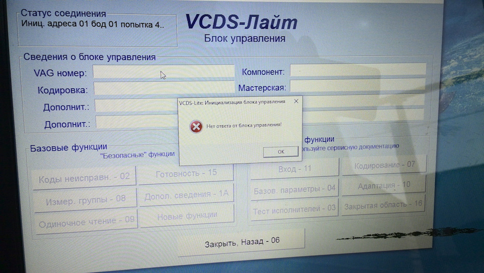 KKL409.1 Вася 1.1 VW Touran 2004 1.9 винда 7. шнурок видит 01 блок читает, а все остальные "нет ответа от блока управления" куда копать, подскажите пожалуйста