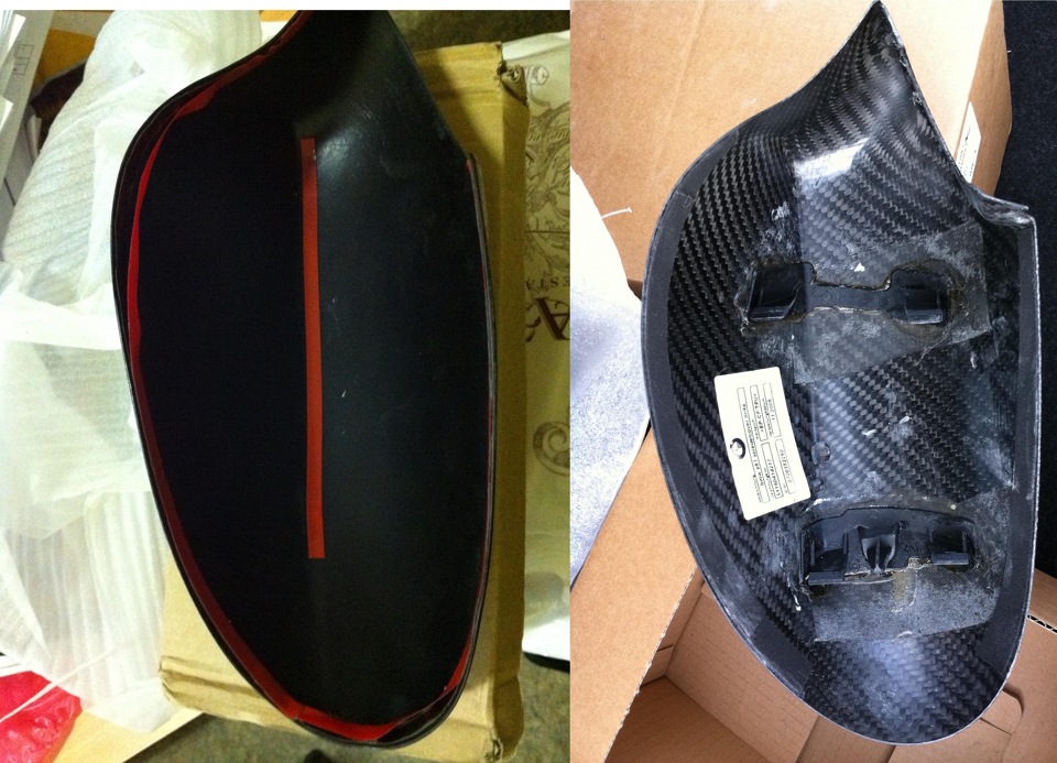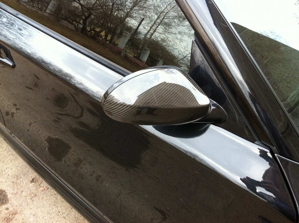 Я даже фото для примера привел где видно отличие накладок от корпусов! Чтоб установить корпус нужно достать само зеркало там внутри защелки их нужно отщелкнуть и снять заводской корпус и затем установить карбоновый!