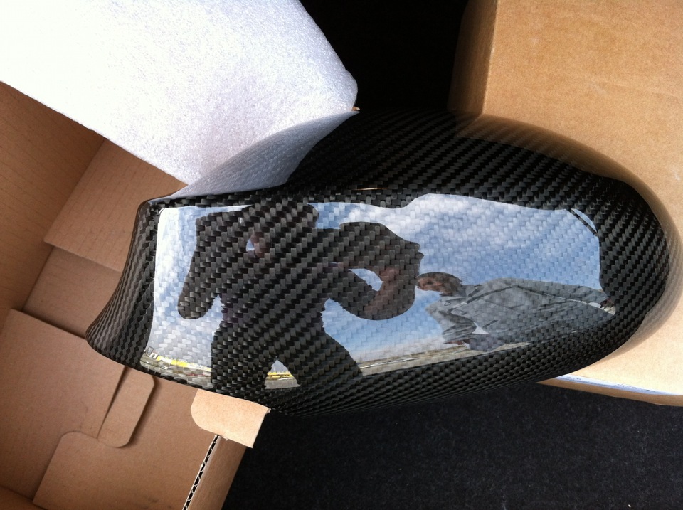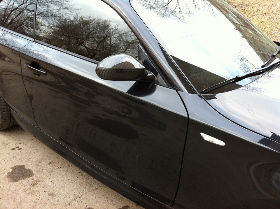 Добрый день друзья! Продолжаю тему карбона — Оригинальные корпуса зеркал заднего вида BMW Performance. Кто помнит, еще зимой мной были приобретены накладки на зеркала из карбона, подчеркиваю именно накладки, т.е. они клеятся к стандартному корпусу зеркала на 3м скотч либо на герметик. Вроде и карбон хорошего качества и структура ровная, внешне почти не отличим от оригинала, но подгонкой я был не доволен. Проблемма была в том что накладка значительно выпирала за пределы корпуса и зазоры были большие и не ровные. На расстоянии метра это было не заметно, но я люблю когда все идеально во всем, и моя машина не исключение! Проездив совсем немного с накладками я их снял и было решено заказать оригинальные корпуса, цена конечно высокая за каких то два небольшых куска карбона, но оно того стоило, в сочетании с карбоновым спойлером выглядит улетно.