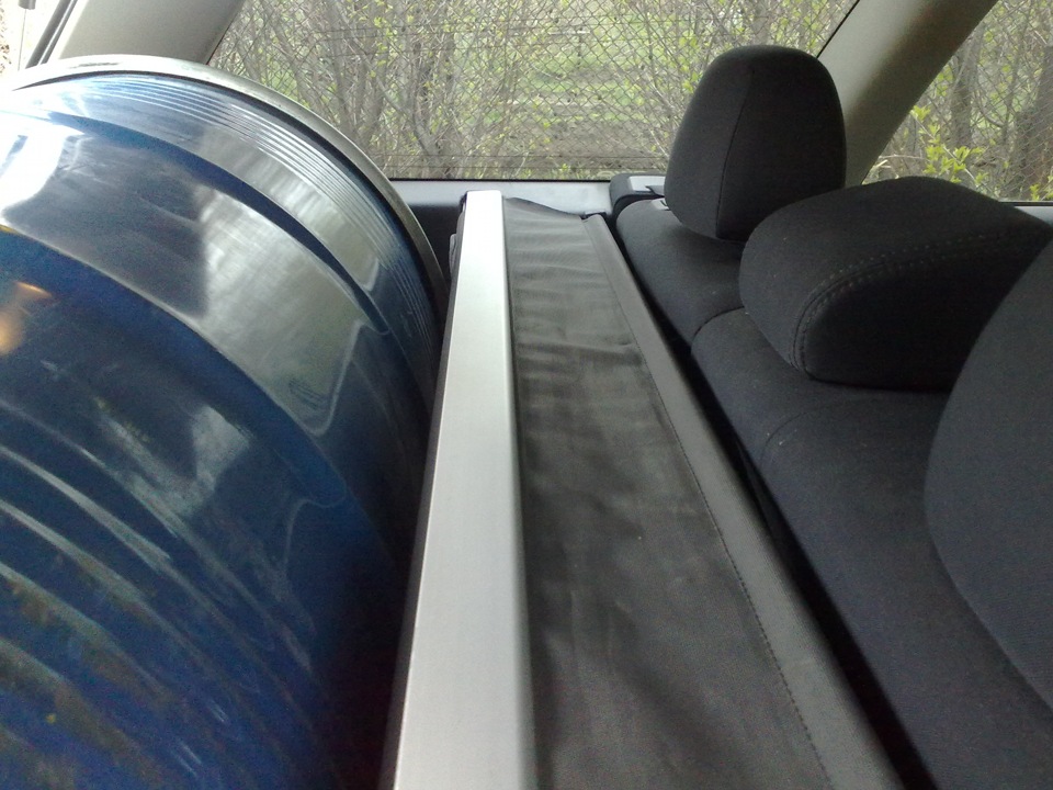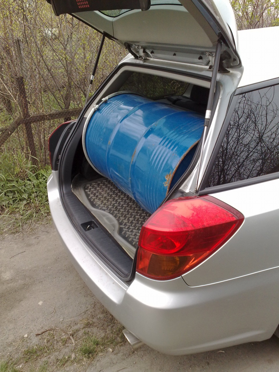 Сегодня выяснил, что в багажник спокойно входит 200-литровая бочка. :)Снимать шторку было лень — крышка и так закрылась.В принципе есть ещё около 15 см запаса, если снять шторку.