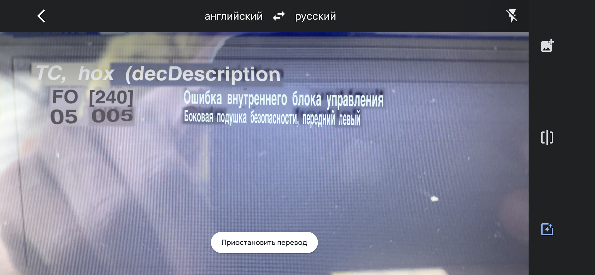 Видит то видит, но он может валится в ошибку когда кто то садится на сиденье. Его нужно отключить физически (черная коробка под сиденьем с синими надписями) и отшить программно через нцс експертентул. Плюс я вижу яндекс переводит внутреннюю ошибку блока. У меня третья версия блока стояла и ошибка была 240. С ней надо блок менять. Насколько знаю только 2,3 версии без программатора не оживить