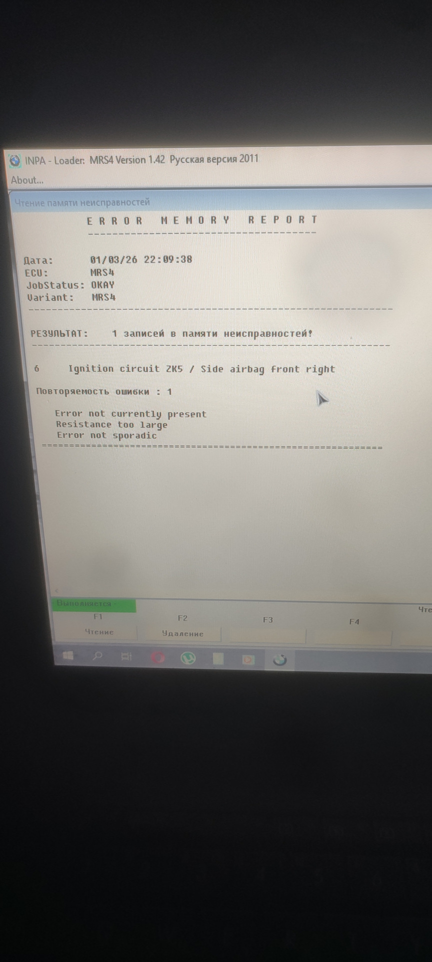 Установил обратно сиденье на 3 болта пока что, стер все ошибки по блоку. И ошибка ушла насовсем! Прошла неделя и никаких фиаско больше не замечено. Это победа! Теперь я уверен, что подушки сработают. Правда напрягают случаи, когда подушки срабатывают просто так, на кочках, ямах и прочем, но буду надеяться, что данные проблемы обойдут меня стороной. Машина еще на шажок ближе к идеалу. Надеюсь кому — то помогу записью. Если что готов помочь с кодировкой блоков ABS, Airbag, IHKA, LCM, пишите если надо будет.