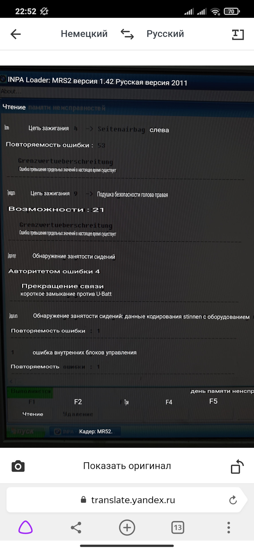 Но радость была не долгой… Отъехав от гаража буквально на полкилометра, ошибка загорелась вновь! Твою ж маму… Подключаю диагностику и вижу следующее: