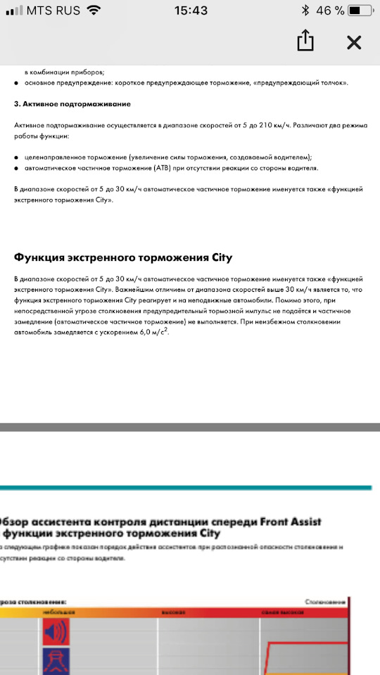 Повторюсь, заводской Front Assist B6 только предупреждает, а B7 — тормозит.